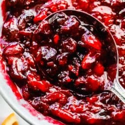 This cranberry sauce is the perfect mixture of sweet and tart! It’s made with fresh cranberries and topped with orange zest to really set it apart!