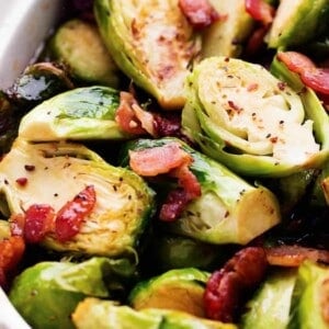 The sweet maple glaze and bacon complement these roasted brussel sprouts perfectly. This will be a side dish that the family won’t be able to get enough of!