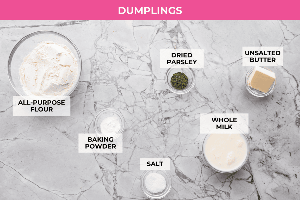 1. Make the Dumplings: In a bowl, whisk together the all-purpose flour, baking powder, salt, and dried parsley. Using a pastry blender or fork, cut the cold, cubed unsalted butter into the flour mixture until mixed in.
