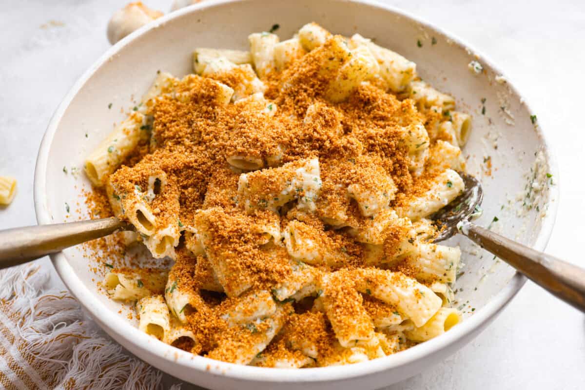 • Reheat: Microwave pasta in 30-second increments until warmed through, then top with breadcrumbs before serving.