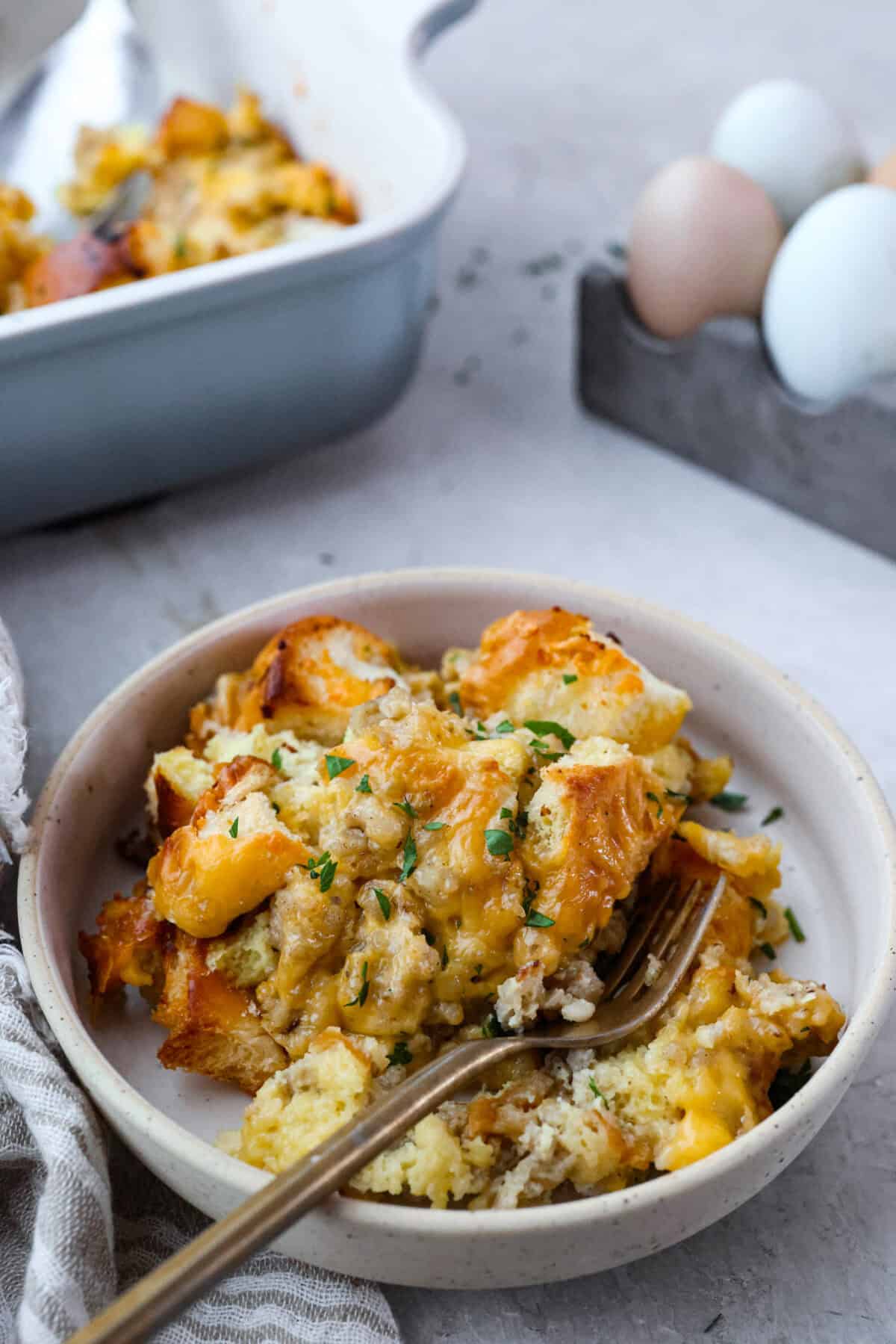 Make-Ahead: Prep the casserole the night before for an easy morning! Just let it rest at room temperature for 30–60 minutes before baking so it heats evenly. If it’s still a bit chilled, simply add a few extra minutes to the bake time.