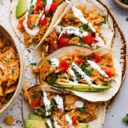 Switch up taco night with these 4-ingredient slow cooker ranch tacos! The chicken shreds perfectly and is packed with flavor. Dinner has never been easier!